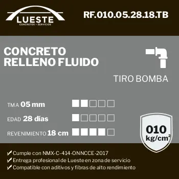 Concreto RF (Relleno Fluido), FC = 010, TMA = 05, Edad = 28, Rev = 18, Tiro = Bombeo