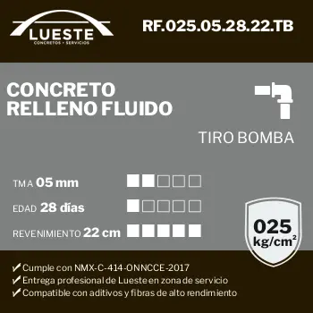 Concreto RF (Relleno Fluido), FC = 025, TMA = 05, Edad = 28, Rev = 22, Tiro = Bombeo
