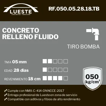 Concreto RF (Relleno Fluido), FC = 050, TMA = 05, Edad = 28, Rev = 18, Tiro = Bombeo